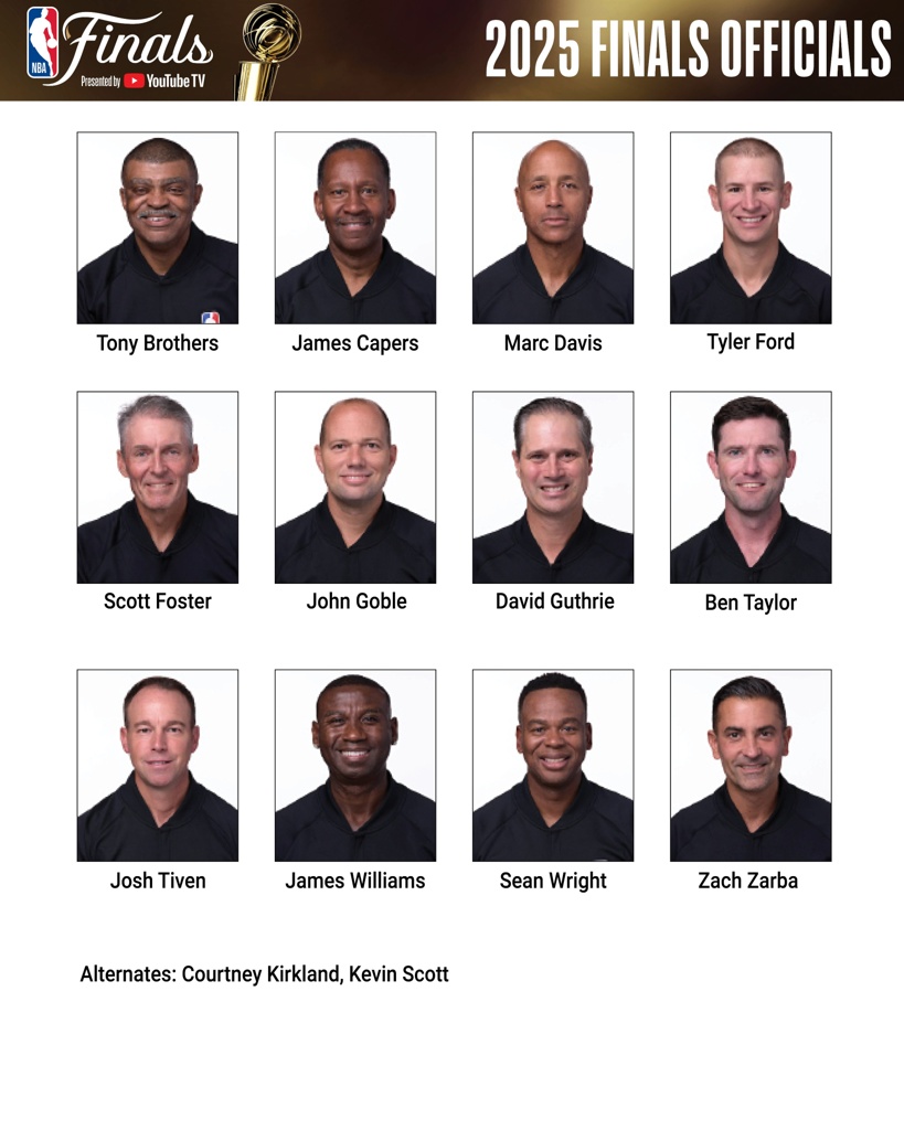 金哨们✍总决赛裁判名单:福斯特+托尼兄弟领衔!共12人