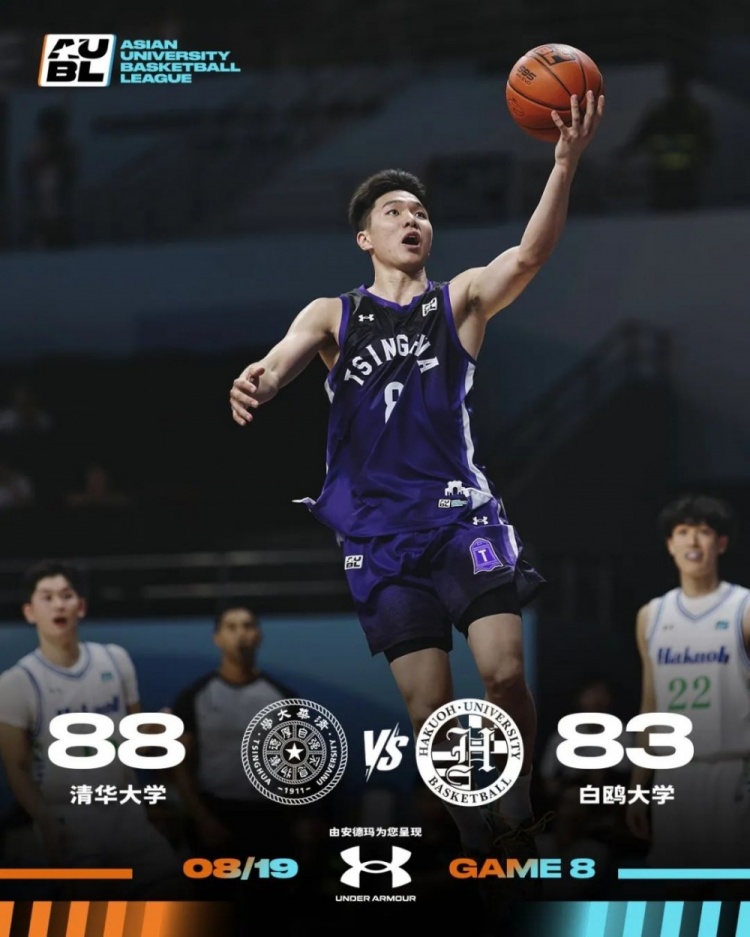 8月19日讯 AUBL亚洲大学生篮球联赛,清华大学在足足落后三节的情况下,依靠着许熙桐、石奎和隰泰诚的发挥,末节单节打出27比14,最终以88-83逆转战胜日本的白鸥大学。