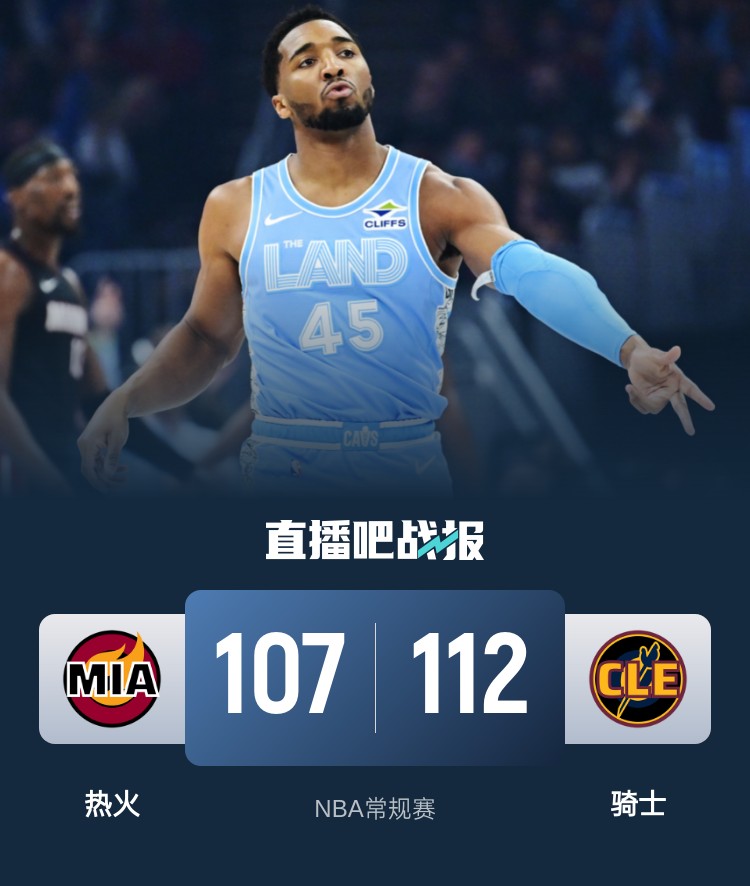 米切尔26+7 邓罗关键出界失误 骑士险胜热火迎12连胜锁季后赛