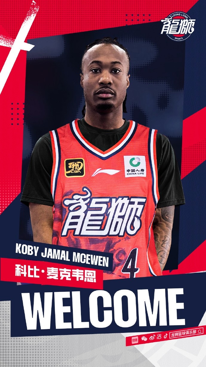 龙狮篮球俱乐部宣布:俱乐部与加拿大籍球员科比·麦克韦恩(Koby Mcewen) 正式签约,待CBA公司审核、公示通过后,麦克韦恩将身披广州朗肽海本队4号战袍开启自己的CBA生涯!Welcome!