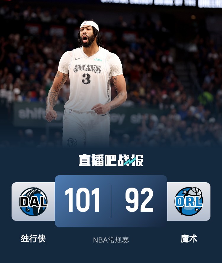 浓眉15+7 哈迪22分 班凯罗35+10 独行侠终结魔术3连胜