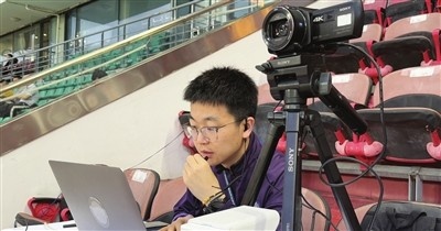 技术人员在目前国内3级职业联赛各队中均有配置,训练场上操作无人机、拍视频,掌管着实时监测设备,比赛时坐在看台高处摆弄着一系列的设备,中场休息时抱着电脑往休息室跑……这就是朱嘉程作为津门虎队技术人员的“外显”。