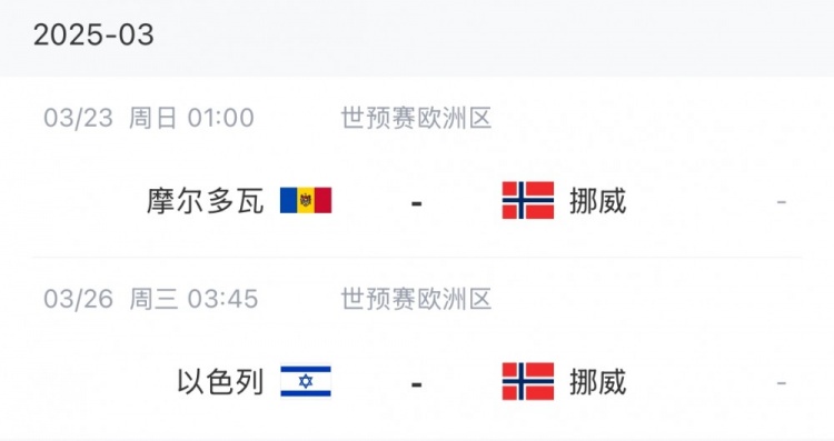 挪威本月赛程: