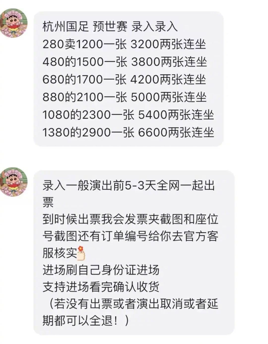 翻5倍不止!票面1380元的国足球票黄牛卖6500元 若连号价格近万元