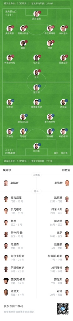 埃弗顿首发:1-皮克福德、15-奥布莱恩、6-塔科夫斯基、32-布兰斯维特、19-米科连科、27-盖耶、37-詹姆斯-加纳、16-杜库雷、29-林德斯特伦、10-恩迪亚耶、14-贝托