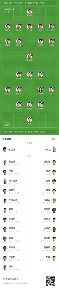 05月05日讯 北京时间19:35,中超第11轮,成都蓉城vs浙江。赛前,双方公布首发。
