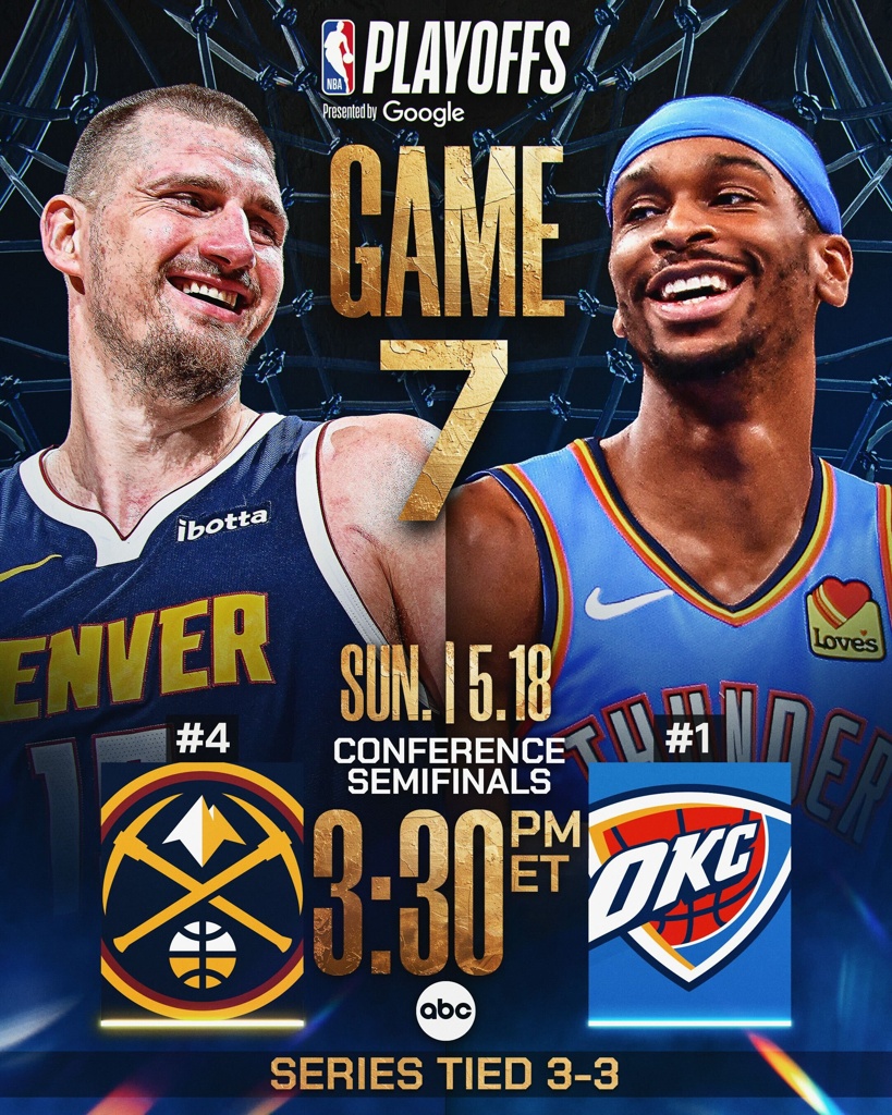 雷霆坐镇主场(常规赛主场胜率联盟前列),年轻阵容体能充沛;掘金连续两轮抢七(首轮险胜快船),若戈登缺阵,约基奇和穆雷的体能压力陡增。