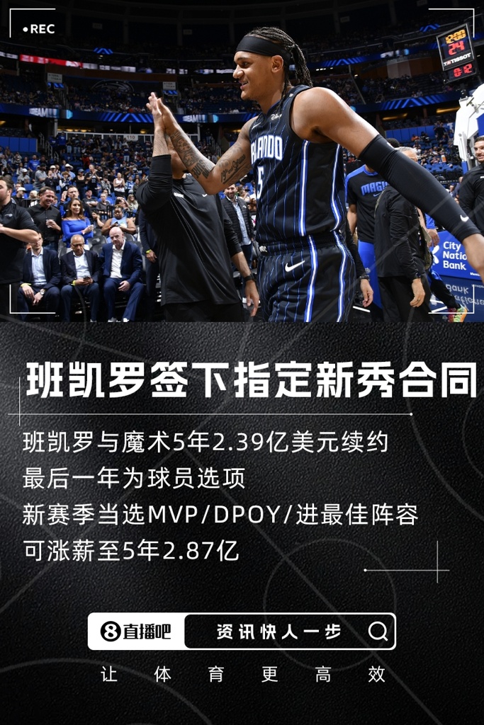 5年2.39亿官宣:班凯罗与魔术达成指定新秀提前续约