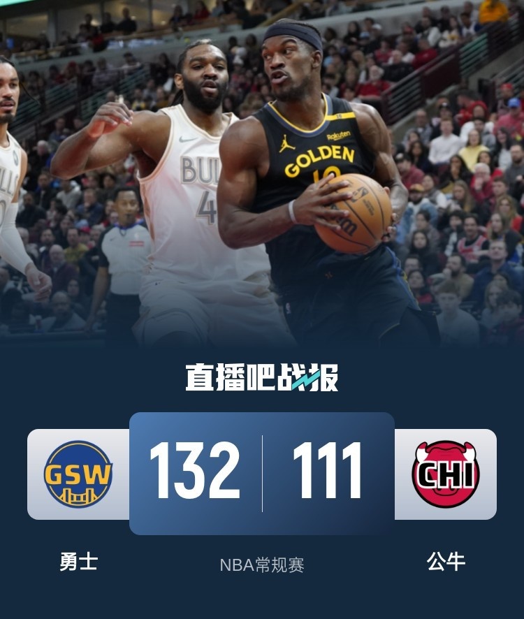 库里34+5+6&单节24分 巴特勒首秀25分 勇士24分逆转大胜公牛