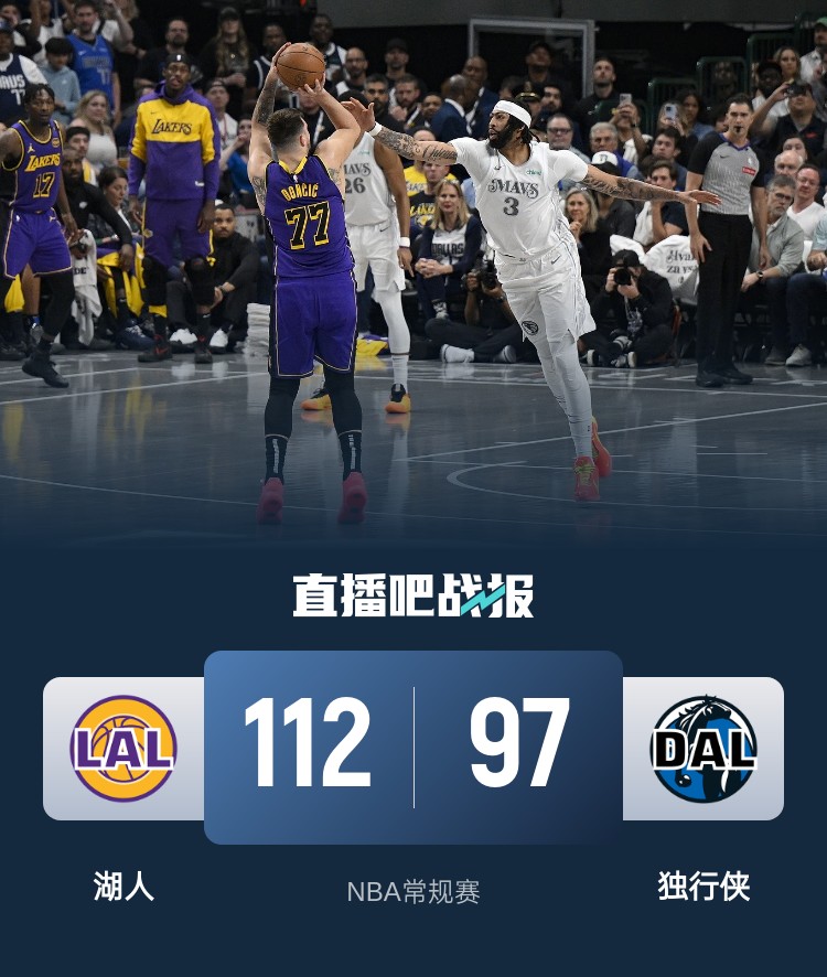 东契奇45+8&上半场31分 詹姆斯27+7 湖人胜独行侠锁定季后赛