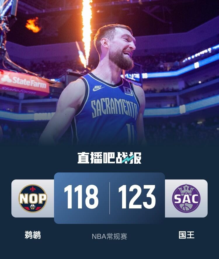 小萨27+16 锡安40分 麦科勒姆31+6 国王20分逆转送鹈鹕8连败