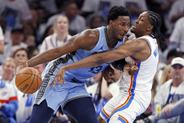 首场季后赛131-80狂胜灰熊,雷霆证明了本队常规赛战绩第一的实力。比赛开始后,灰熊采取了包夹亚历山大防守策略,也一度让常规赛MVP最大热门人选在首节6投1中,但这给了雷霆众将全面爆发的机会。全场杰伦·威廉姆斯20分5篮板6助攻,亚历山大15分3篮板5助攻,切特·霍姆格伦19分10篮板,阿隆·维金斯21分4篮板2助攻。由于早早大比分领先,雷霆首发五虎出场时间都在26分钟以下。依托本队出色的机动能力,雷霆的轮转换防和包夹让灰熊在进攻上无所适从。本场尼古拉·托皮奇和乌斯曼·吉昂继续缺席比赛。
