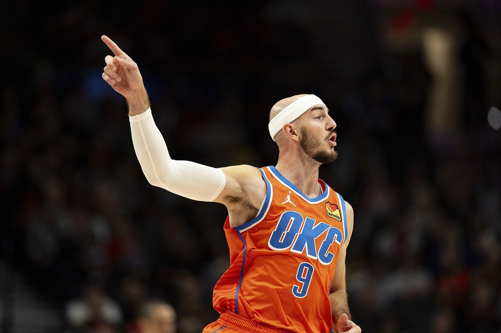 雷霆内线霍姆格伦表现慢热,在上半场仅拿1分,不过到了下半场大爆发,第三节独得16分,32分钟的时间里,投篮16中8,三分球10中5,罚球4中3,拿到24分8篮板的数据,正负值+18全场最高。