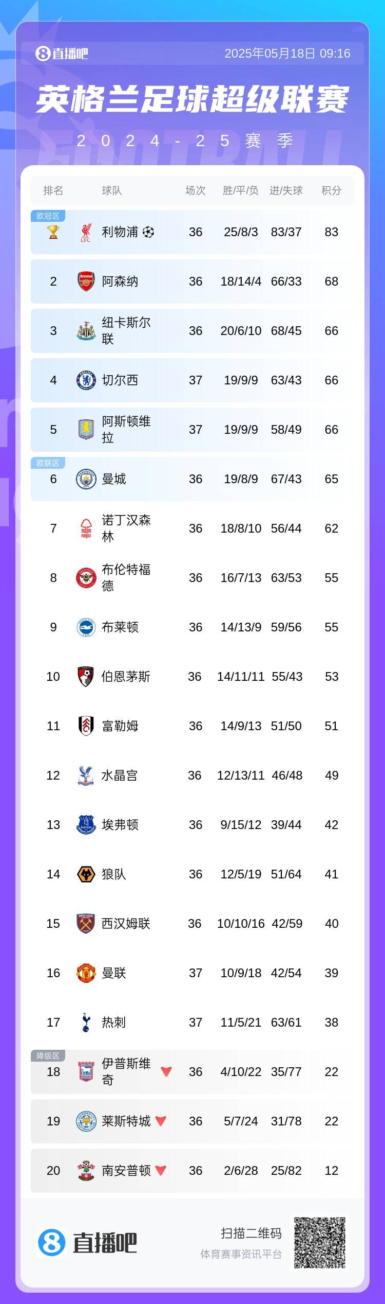 2、切尔西以英超第7结束本赛季,切尔西踢欧联。联赛杯冠军纽卡的欧协资格顺延到英超第8,英超10队踢欧战。