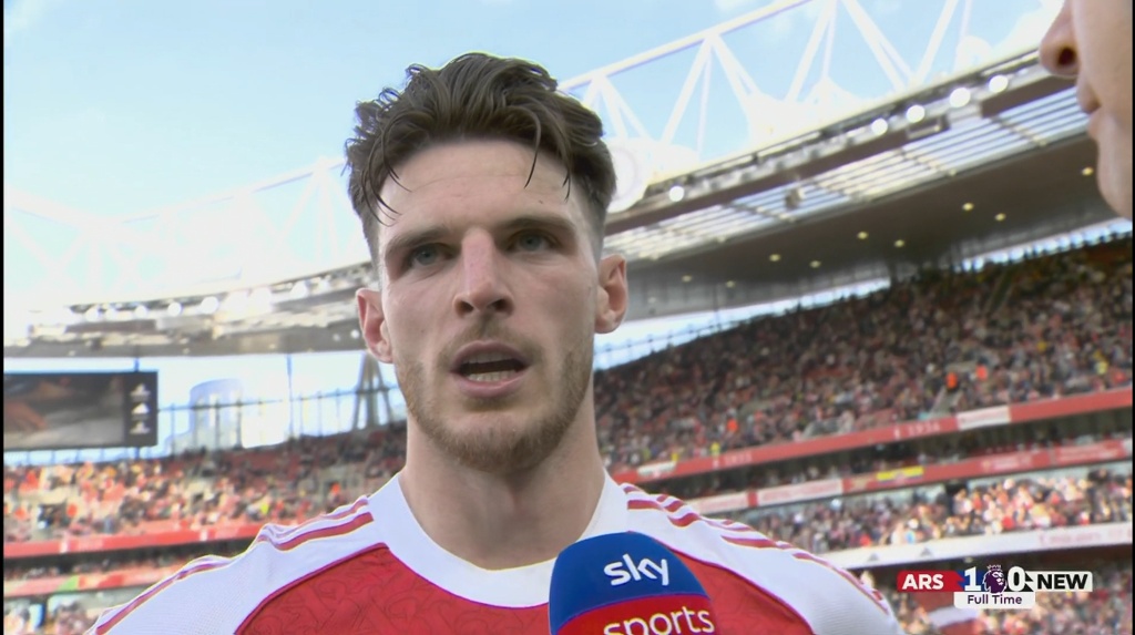 05月19日讯 英超第37轮,阿森纳主场1-0力克纽卡。赛后为枪手进球的赖斯接受了媒体采访。