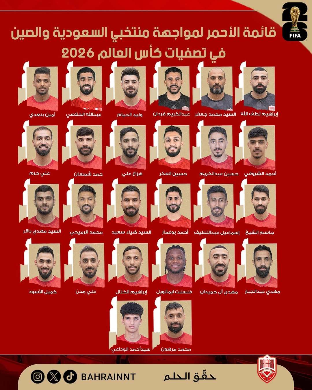 国足主场对手!巴林名单:大多来自巴林国内联赛 1名西甲梯队小将