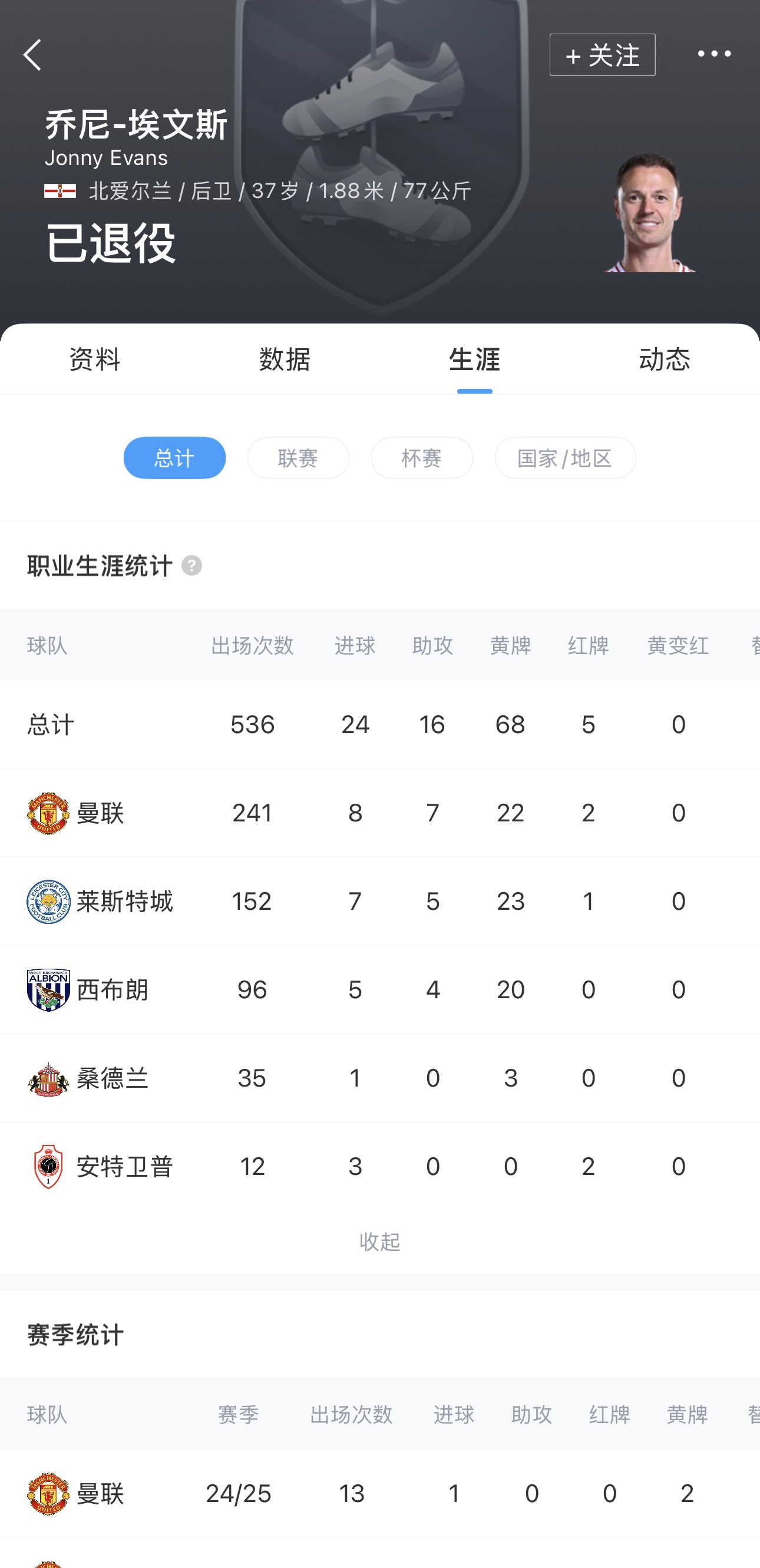 37岁的埃文斯两度在曼联效力,共计超过10个赛季时间。2007年秋,埃文斯为曼联一线队上演首秀。在接下来的7个赛季里,他是球队后防线的重要成员。