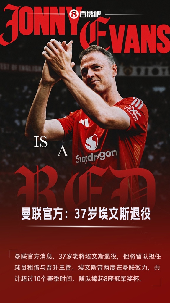 06月30日讯 官方消息,37岁曼联老将埃文斯退役,留队担任曼联球员租借与晋升主管。