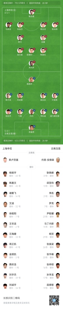 04月02日讯 北京时间今日18点,中超第4轮,上海申花vs云南玉昆,赛前双方首发阵容出炉!玉昆主帅安德森出席赛前发布会表示奥斯卡有小伤病,球员本场也缺席名单。