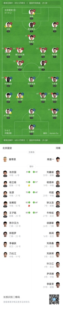 半场战罢,国安暂1-0河南队。