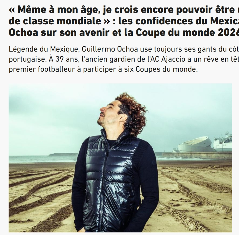 在阿雅克肖,奥乔亚连续两年帮助球队保级,他个人连续两年当选球队赛季最佳,第三年球队降级奥乔亚离队,此时他参加了2014世界杯,这位1米85,头戴发带,一头卷发的门将吸引了全世界的目光